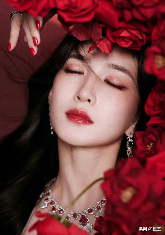 大波涛鬈发衬得所有东说念主温暖又有气场,清透红唇妆呼应玫瑰与珠宝的红调,把东方女性的温婉与凌厉感揉得刚刚好,是闇练女性不错平直模仿的高等感穿搭。