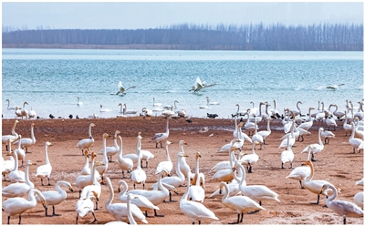 在山西运城市平陆三湾大天鹅景区栖息的日间鹅。 常 奇摄(影像中国)
