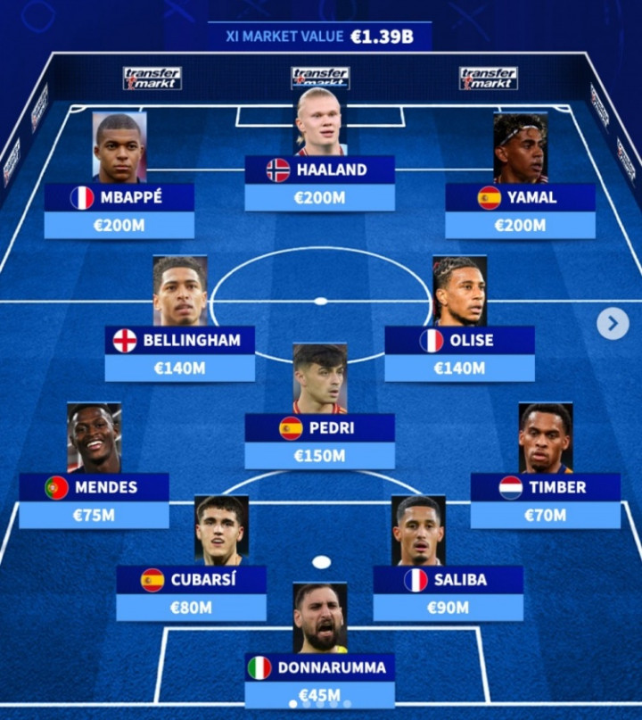 乐动app 德转欧洲最贵阵: 姆巴佩、哈兰德、亚马尔三叉戟, 佩德里在列